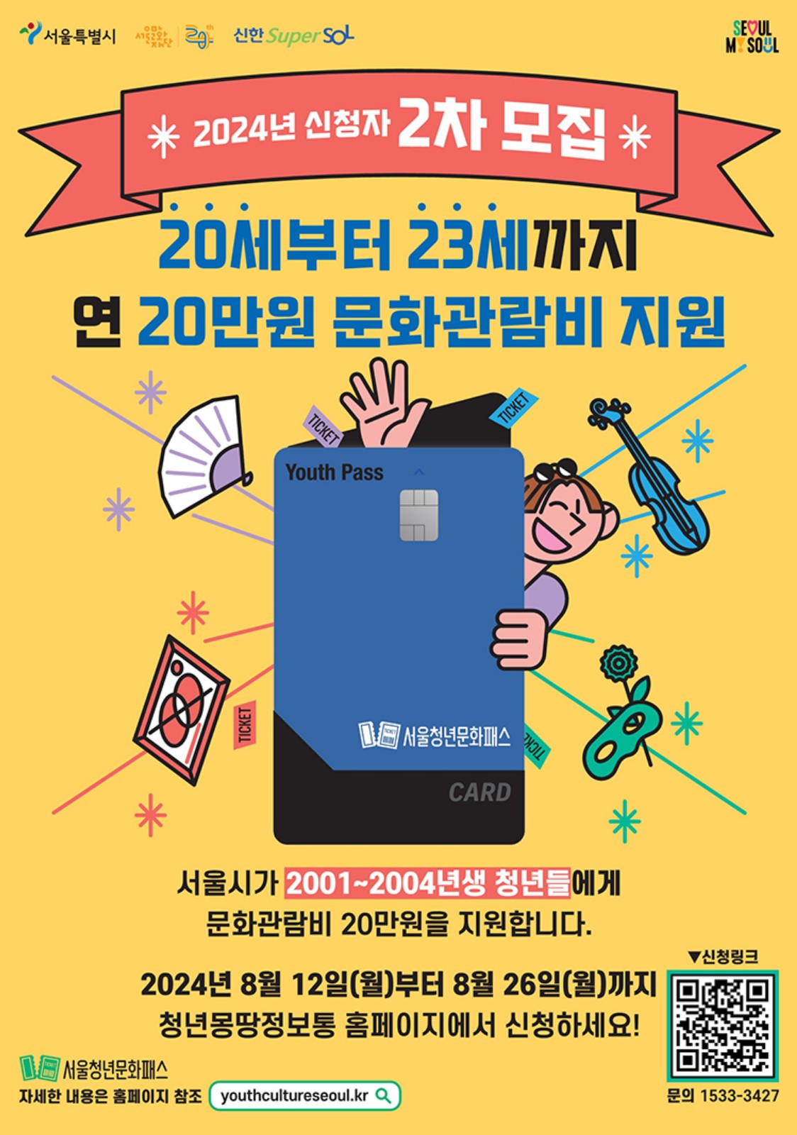 서울시가 20~23세 청년들의 문화예술 향유 기회를 확대하기 위한 서울청년문화패스 사업의 하반기