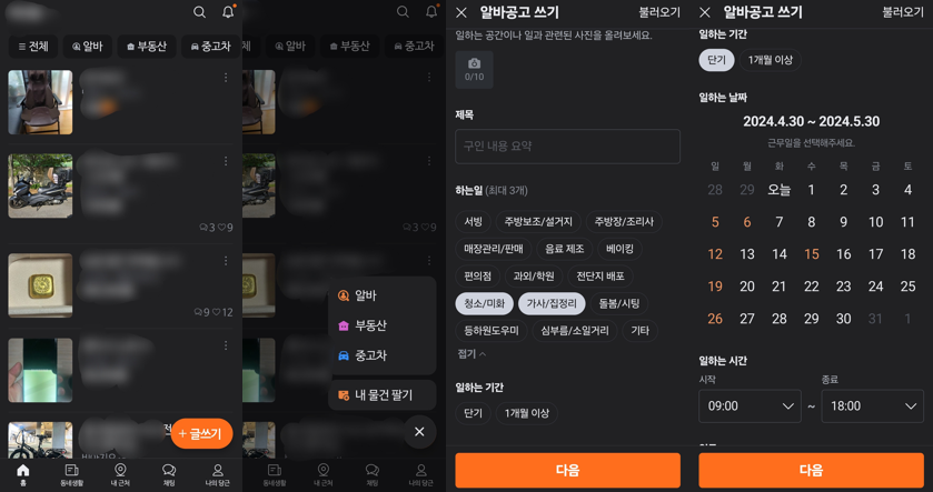 (1) 당근어플를 사용하여 공고글을 올립니다.