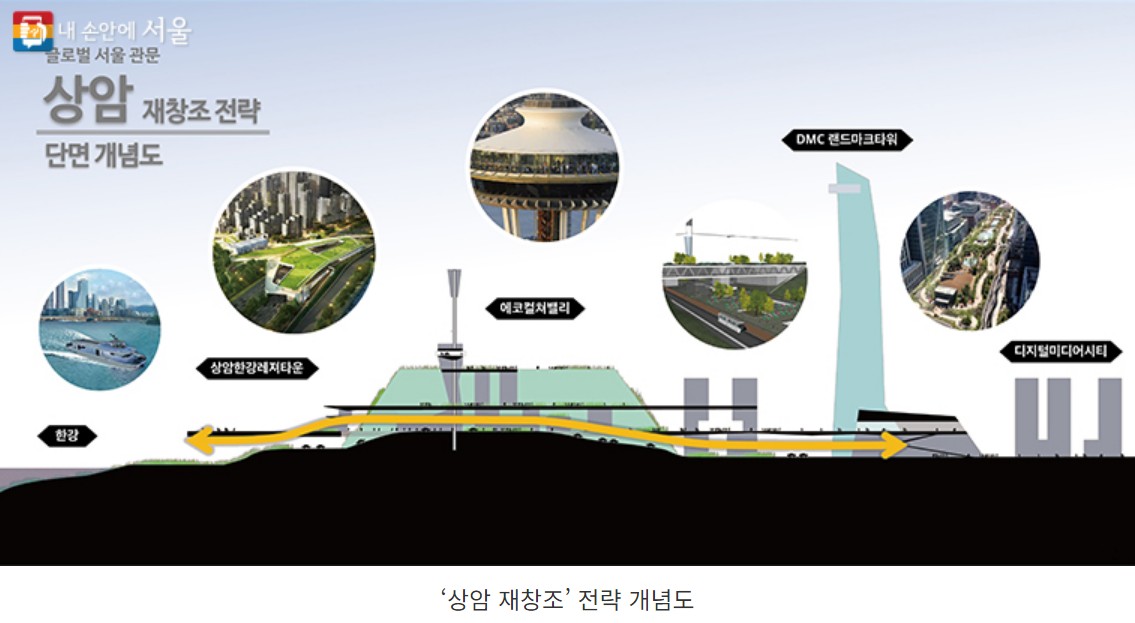 서울시는 매력적인 한강 수변공간, 대규모 공원, K-문화의 허브 DMC 등 상암이 갖고 있는 잠재력을