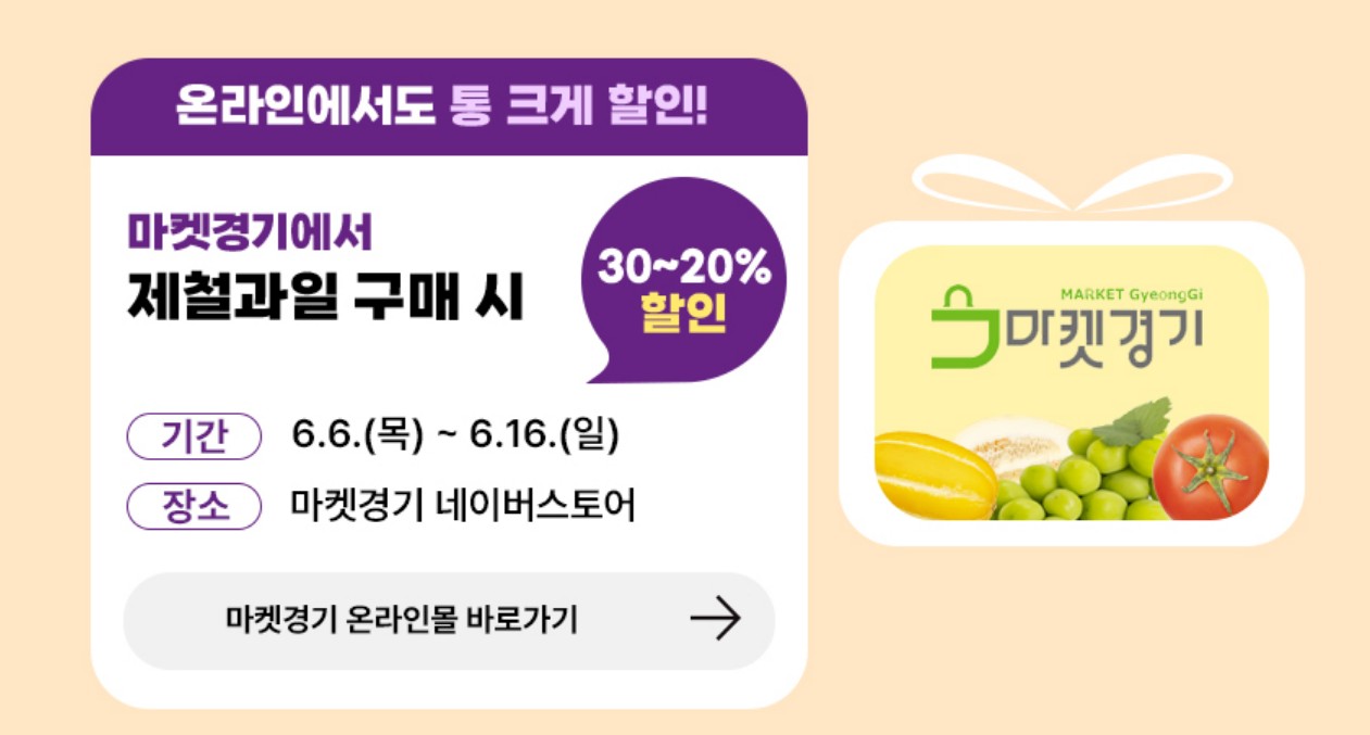 주 할인 품목은 제철과일이며 20~30% 할인을 진행합니다.