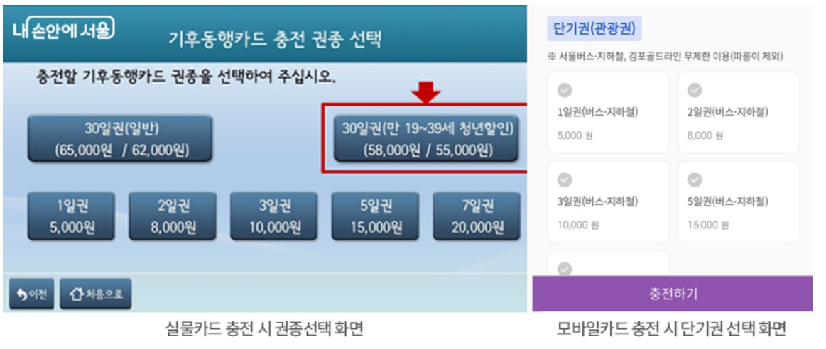 앞으로 청년들은 7천원 할인된 5만 5천원(따릉이 미포함) 5만 8천원으로 바로 충전하여