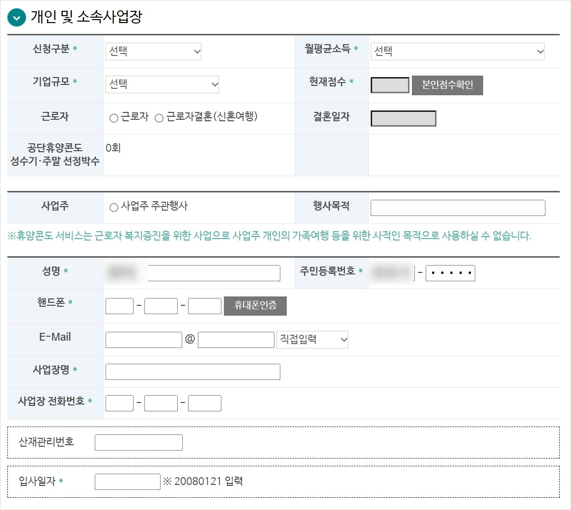 5. 개인정보와 소속사업장정보를 입력합니다.
