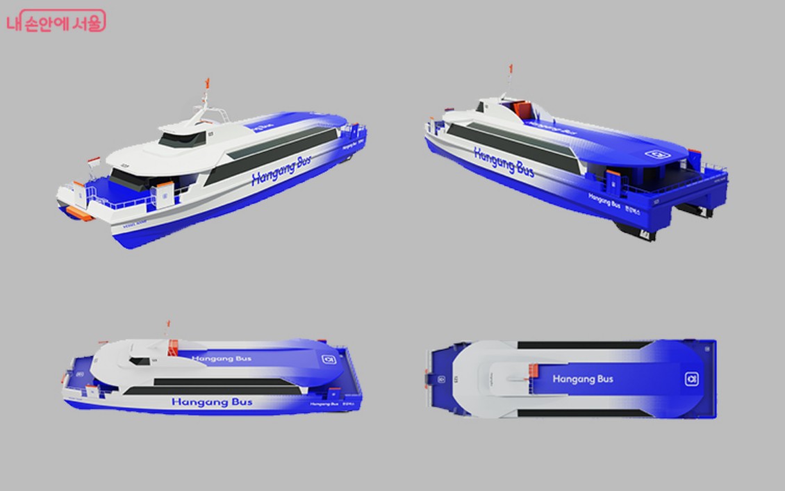 기본바탕으로 하고 청량감 있는 파란색을 배색했으며, 선체 뒷면에는 사선의 그라데이션을 적용해 한강의
