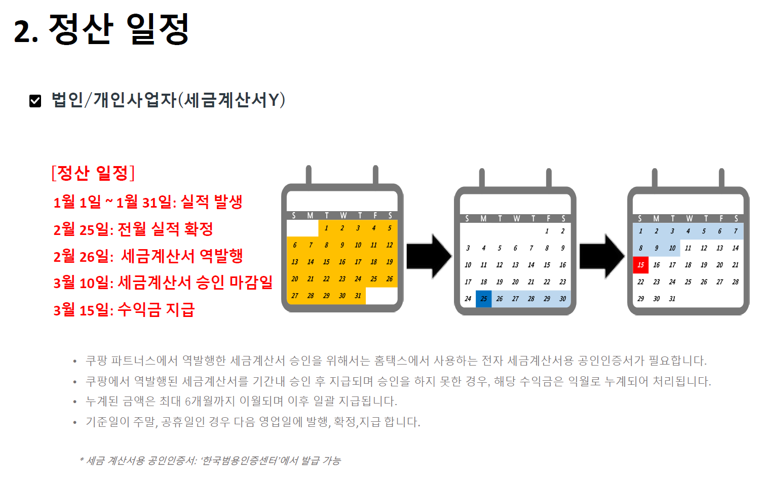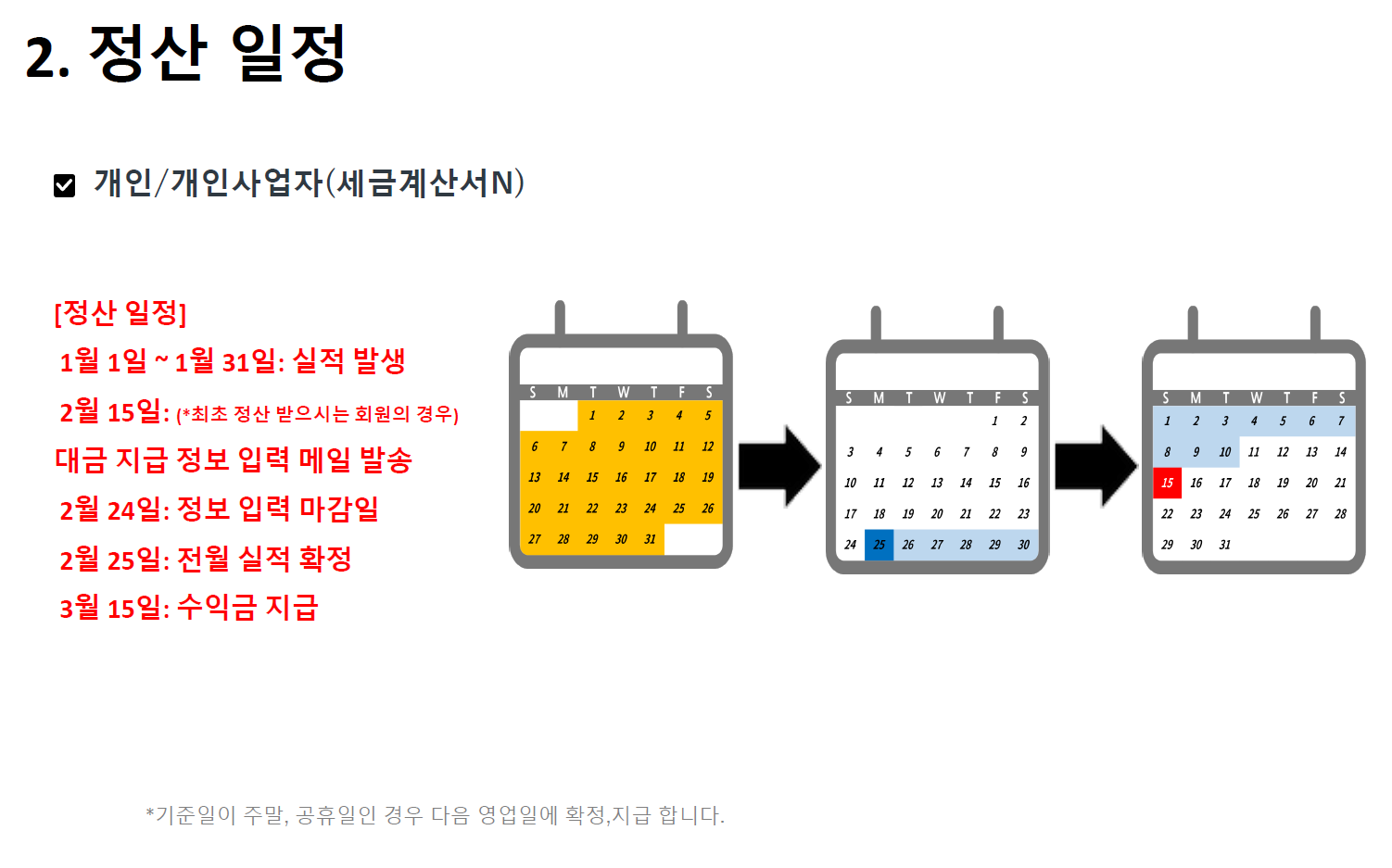 ※보시는 바와 같이 먼저 150,000원 이상의 매출이 발생한 이후 승인 절차가 진행이 됩니다.