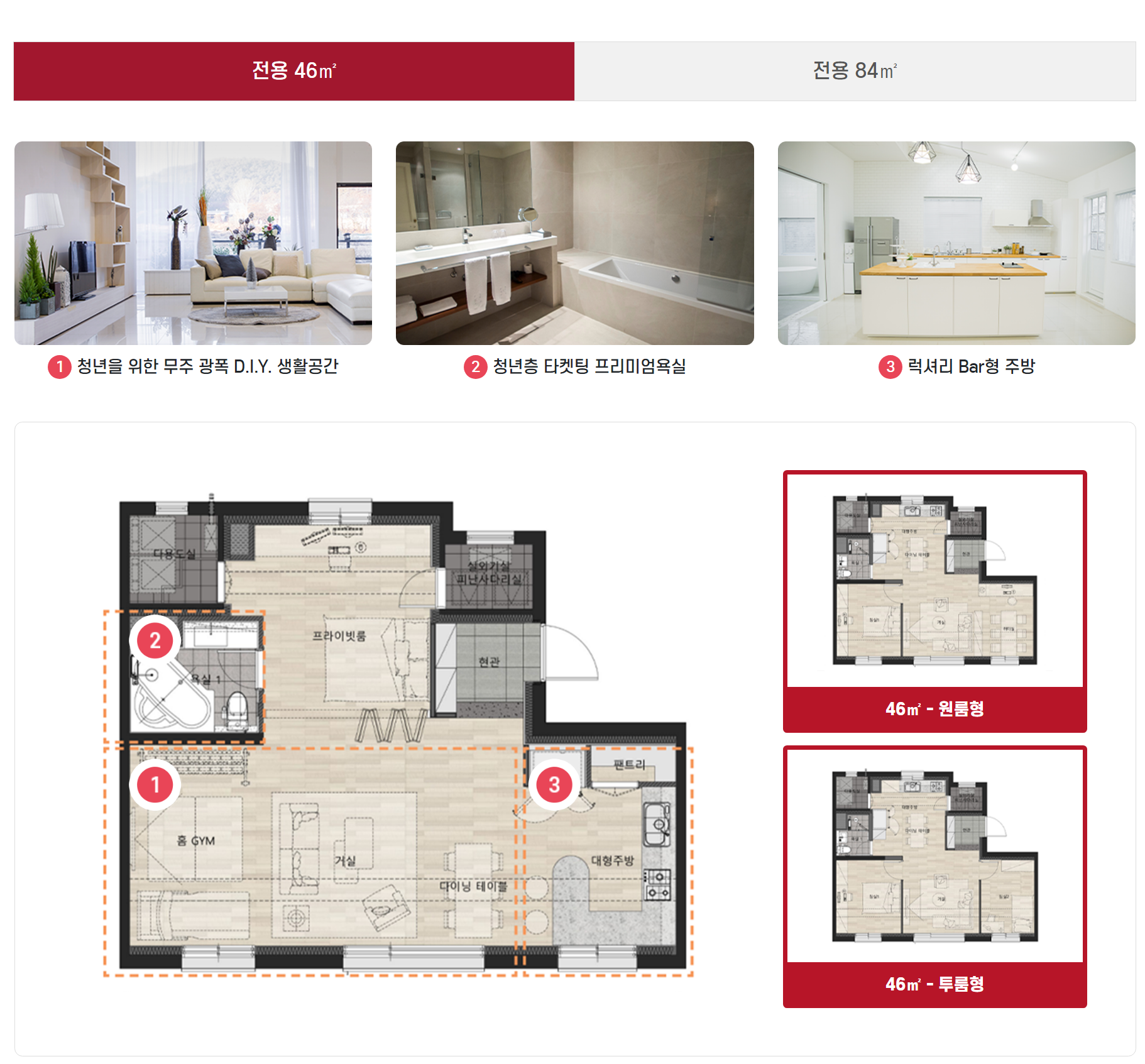 획일화된 통일된 공간이 아닌 생활 패턴을 고려한 주택 평면을 마련할 계획입니다.